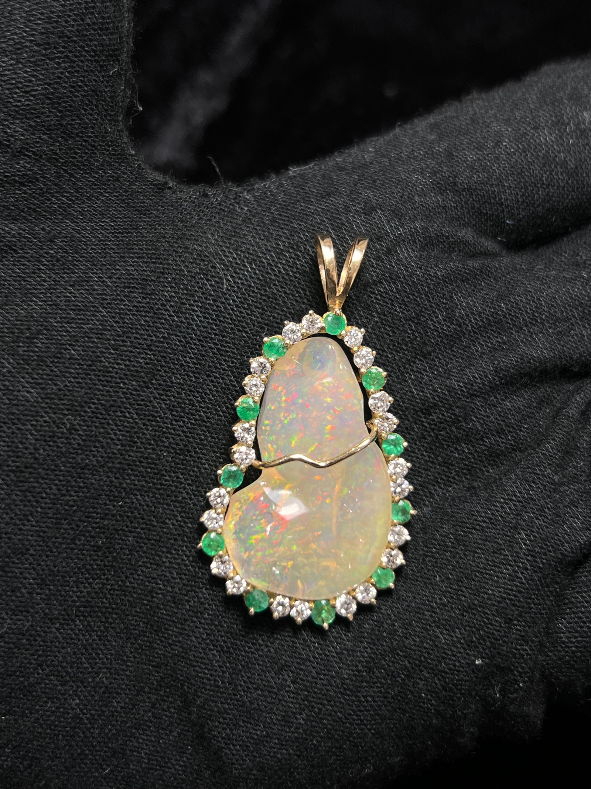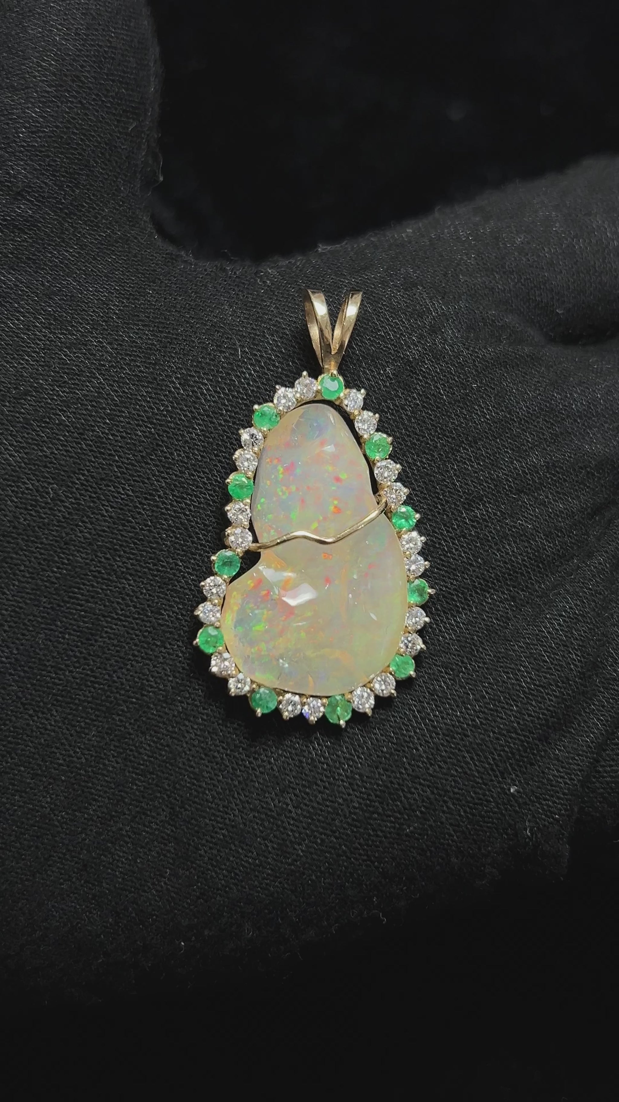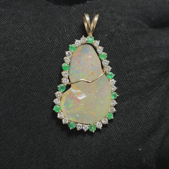 DIJE DE OPALO CON DIAMANTES Y ESMERALDAS