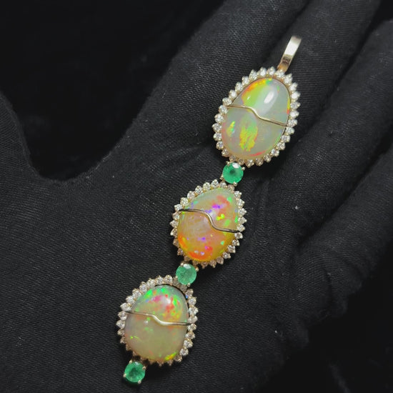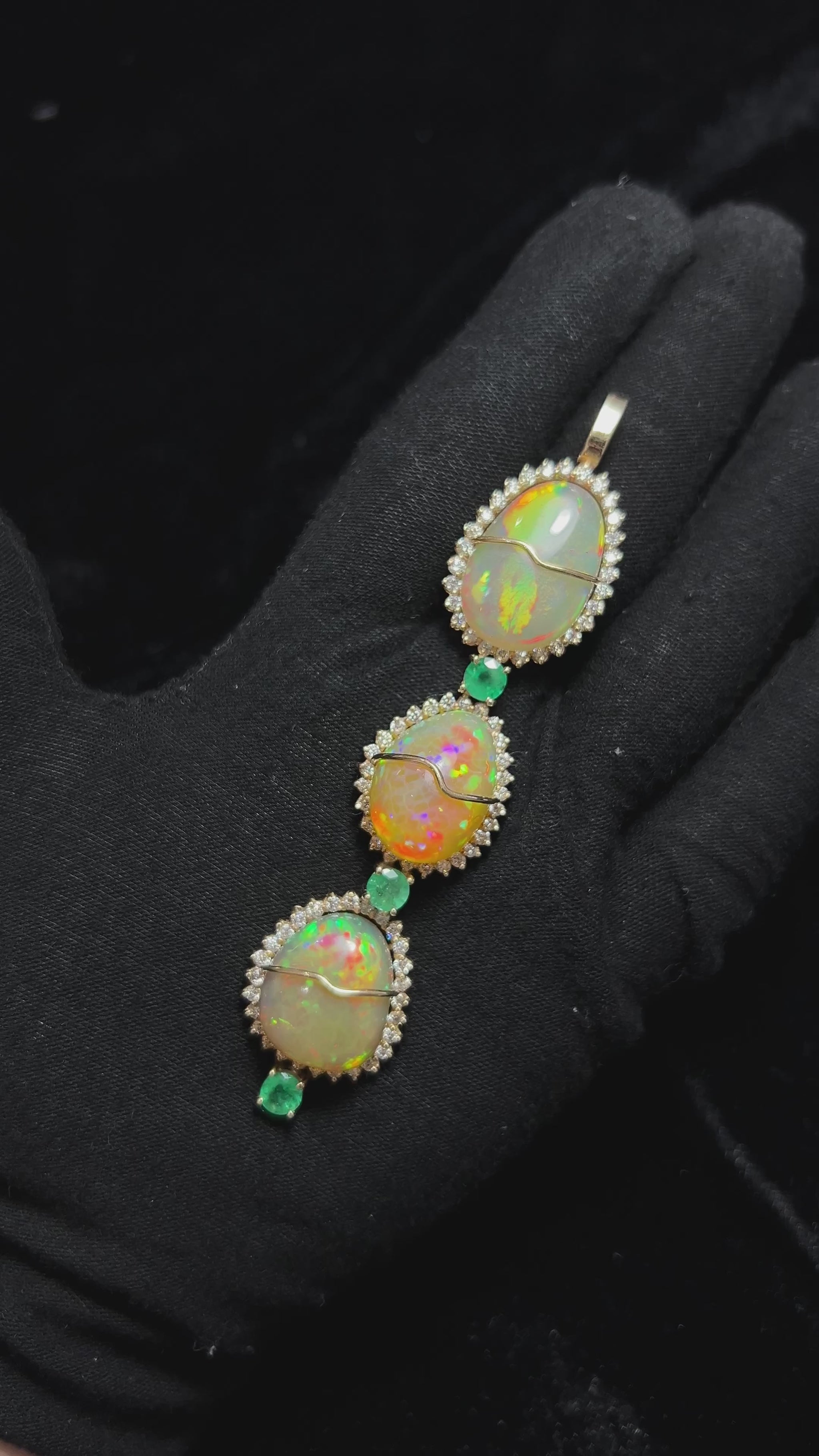 DIJE DE OPALO CON ESMERALDAS Y DIAMANTES